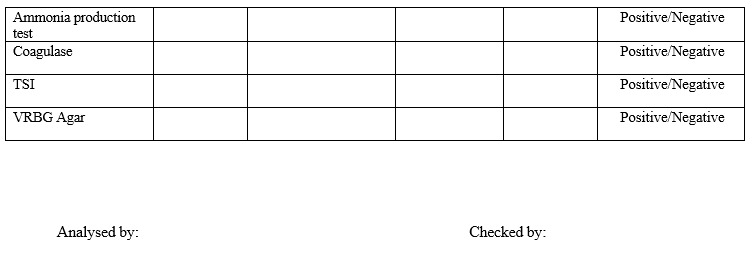 Result: A prussian blue color slant indicates positive test while negative test will have no bacterial growth and will remain green in colour