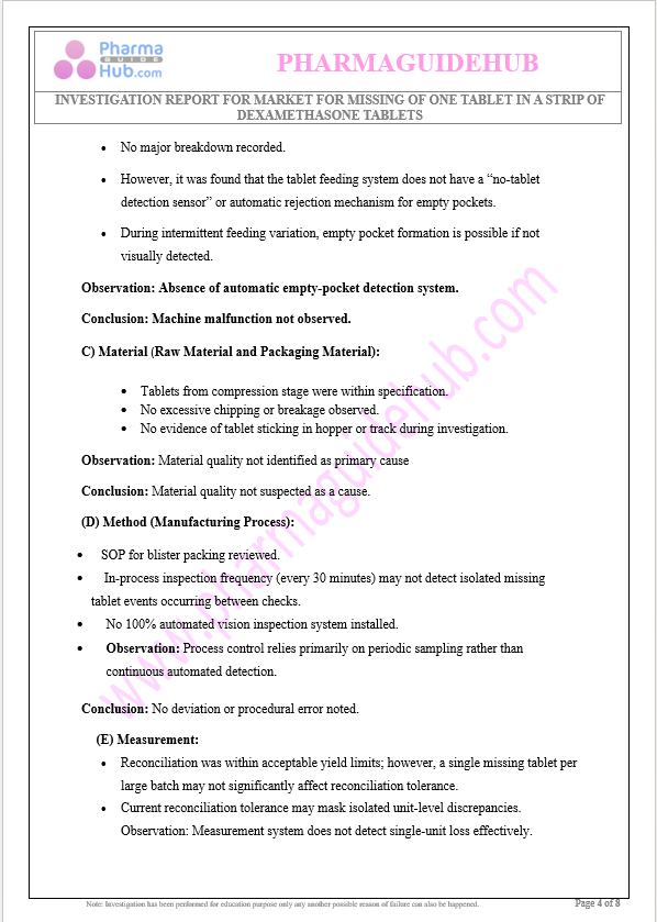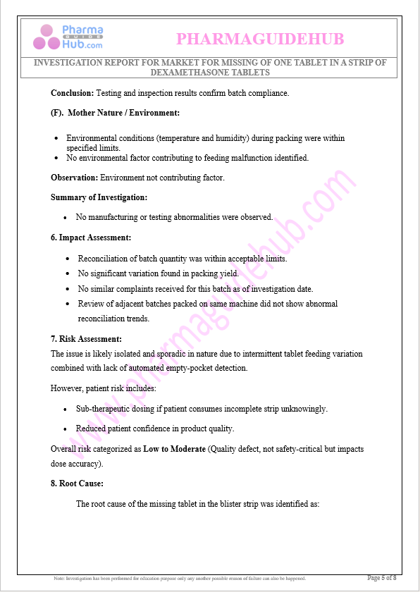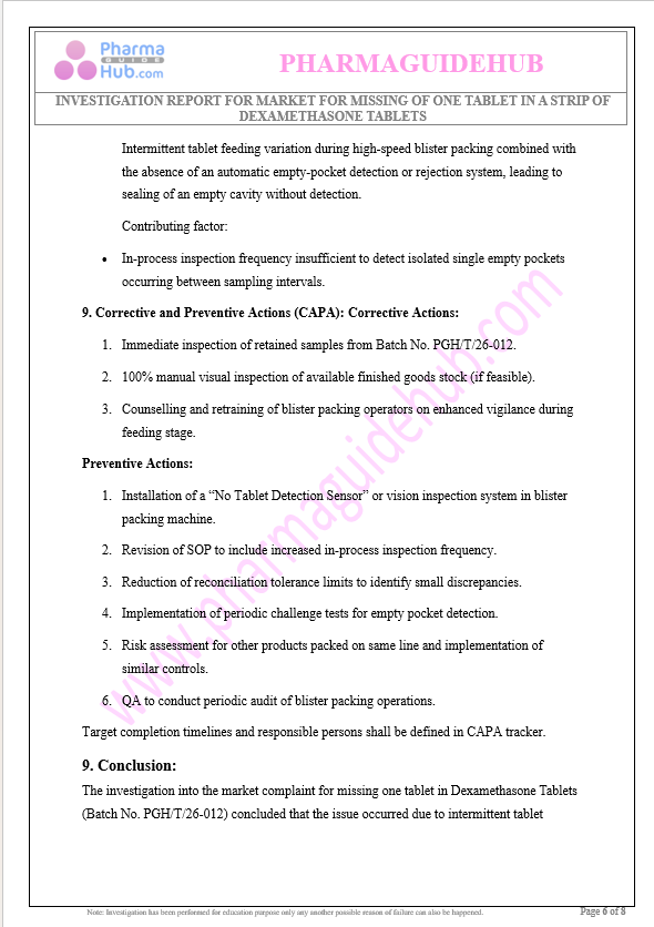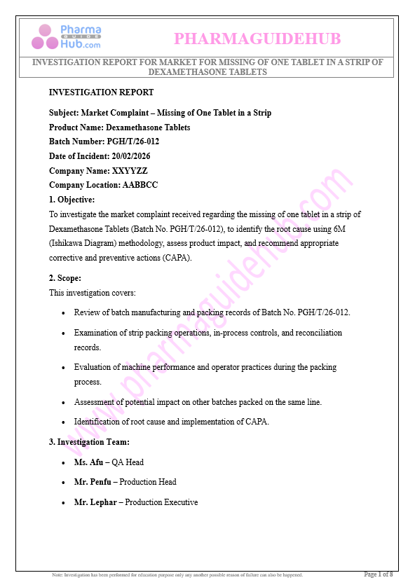 https://pharmaguidehub.com/product/investigation-report-for-market-for-missing-of-one-tablet-in-a-strip-of-dexamethasone-tablets/