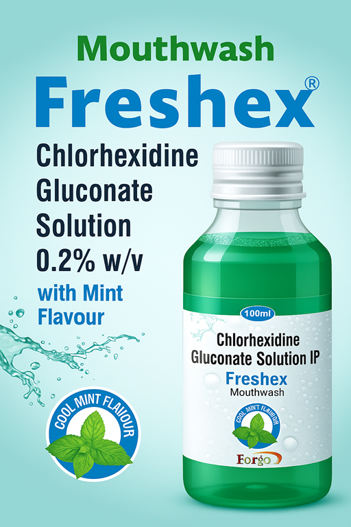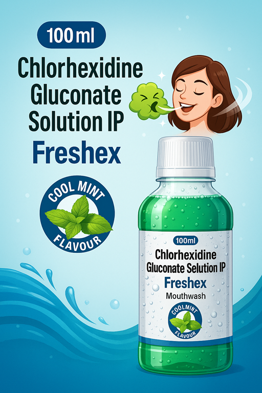 Freshex Mouthwash is an effective oral care solution containing Chlorhexidine Gluconate 0.2%, a well-known antiseptic agent widely used for maintaining oral hygiene and preventing dental issues. This mouthwash is specifically formulated to combat harmful oral bacteria that cause plaque, gingivitis, and bad breath. Chlorhexidine works by disrupting the bacterial cell membrane, providing a broad-spectrum antimicrobial action that helps reduce inflammation and supports the healing of oral tissues.