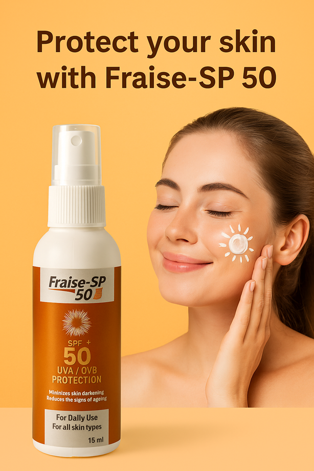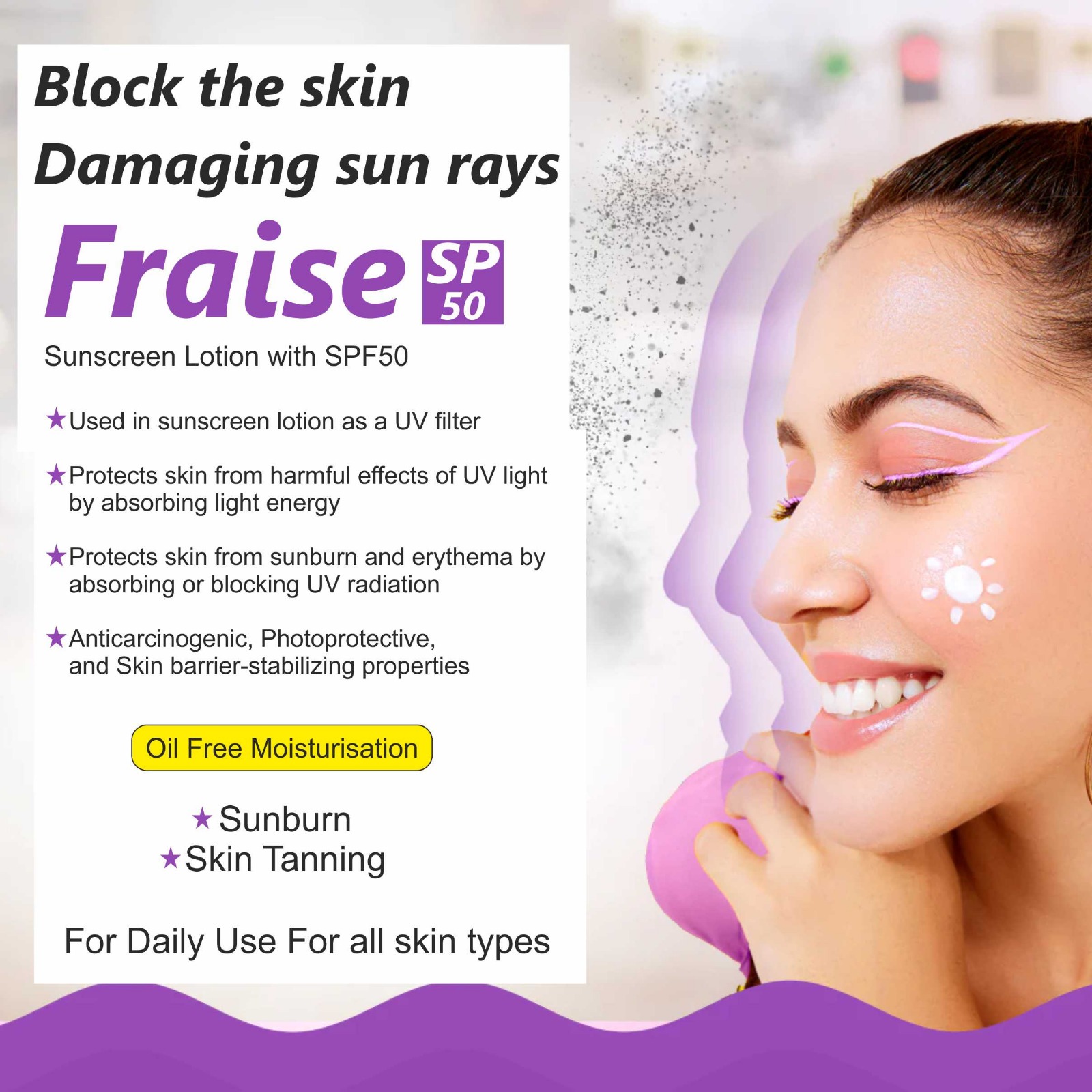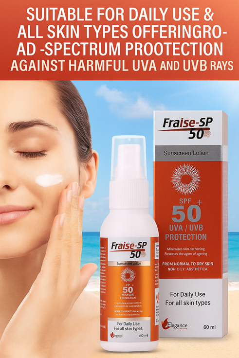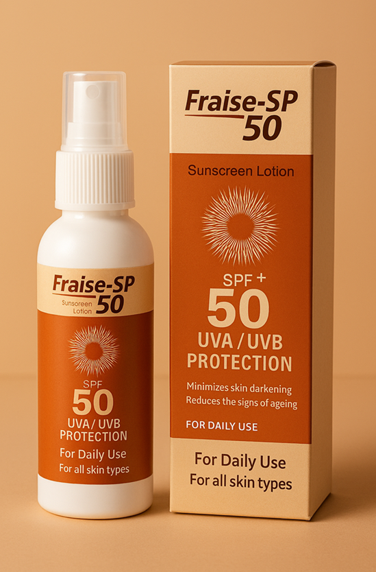 Fraise SP 50 Sunscreen Lotion SPF 50 is a highly effective skincare product designed to provide broad-spectrum protection against harmful UVA and UVB rays. With SPF 50, it forms a powerful barrier that helps prevent sunburn, tanning, and photoaging, which are common concerns caused by prolonged sun exposure. This sunscreen is suitable for all skin types, including oily, dry, sensitive, and combination skin, making it a versatile choice for daily use. One of its standout features is its non-greasy and lightweight texture, which gets easily absorbed into the skin without leaving a white cast or sticky residue. It allows the skin to breathe while still offering excellent sun protection. Moreover, the water-resistant formulation ensures that the lotion remains effective even during sweating or light water exposure, making it a reliable choice for outdoor activities, travel, and sports. Fraise SP 50 also contains skin-nourishing ingredients that help maintain hydration and soothe the skin, thus promoting overall skin health. Its long-lasting defense reduces the need for frequent reapplication, offering convenience and assurance throughout the day. Whether you’re heading to the beach, commuting, or simply spending time outdoors, this sunscreen serves as an essential part of your daily skincare routine. Regular use can significantly reduce the risk of premature signs of aging such as fine lines, dark spots, and wrinkles. In addition to sun protection, it acts as a shield against environmental stressors like pollution and harsh weather, ensuring your skin remains radiant and protected at all times. Dermatologically tested and recommended by skin experts, Fraise SP 50 Sunscreen Lotion SPF 50 is an all-weather, all-skin-type solution that combines effective sun protection with skin-loving care—helping you embrace the sun safely and confidently.