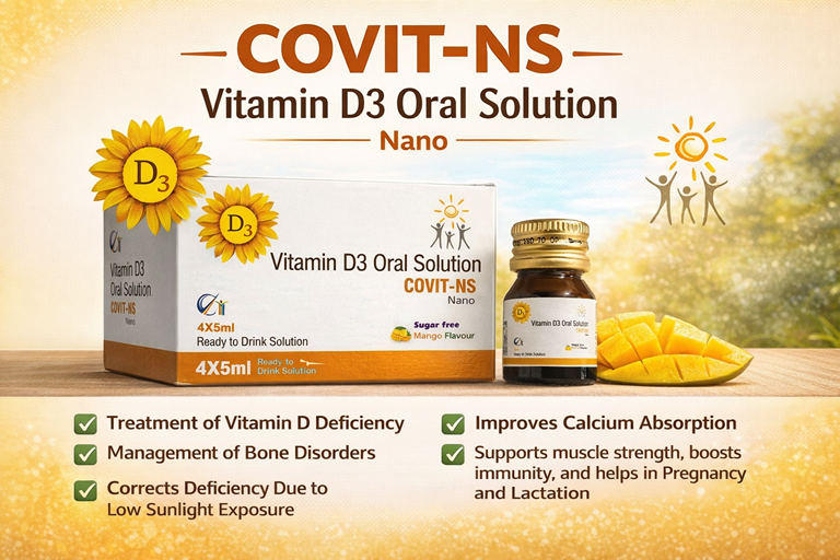COVIT NS 60000 IU Vitamin D3 Oral Solution, Helps Keep Bones Healthy, Aids in Boosting Immunity Sugar-Free
