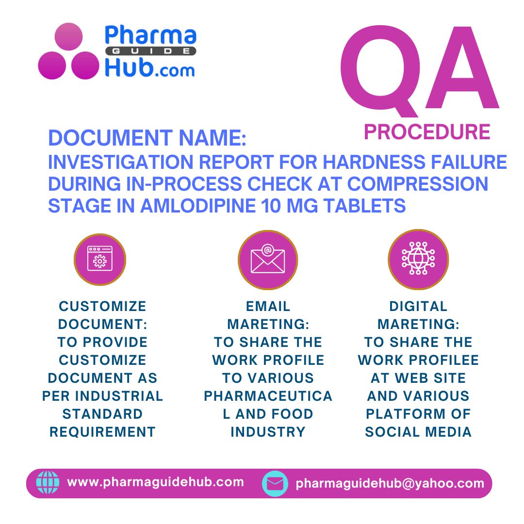 INVESTIGATION REPORT FOR HARDNESS FAILURE DURING IN-PROCESS CHECK AT COMPRESSION STAGE IN AMLODIPINE 10 MG TABLETS