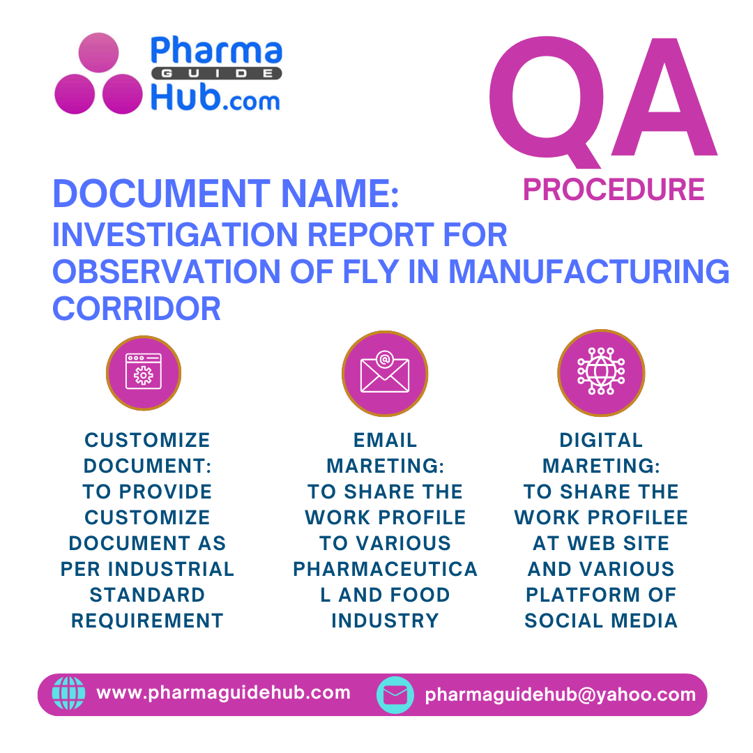 THIS DOCUMENT CONTAIN THE INFORMATION FOR THE INVESTIGATION REPORT FOR OBSERVATION OF FLY IN MANUFACTURING CORRIDOR