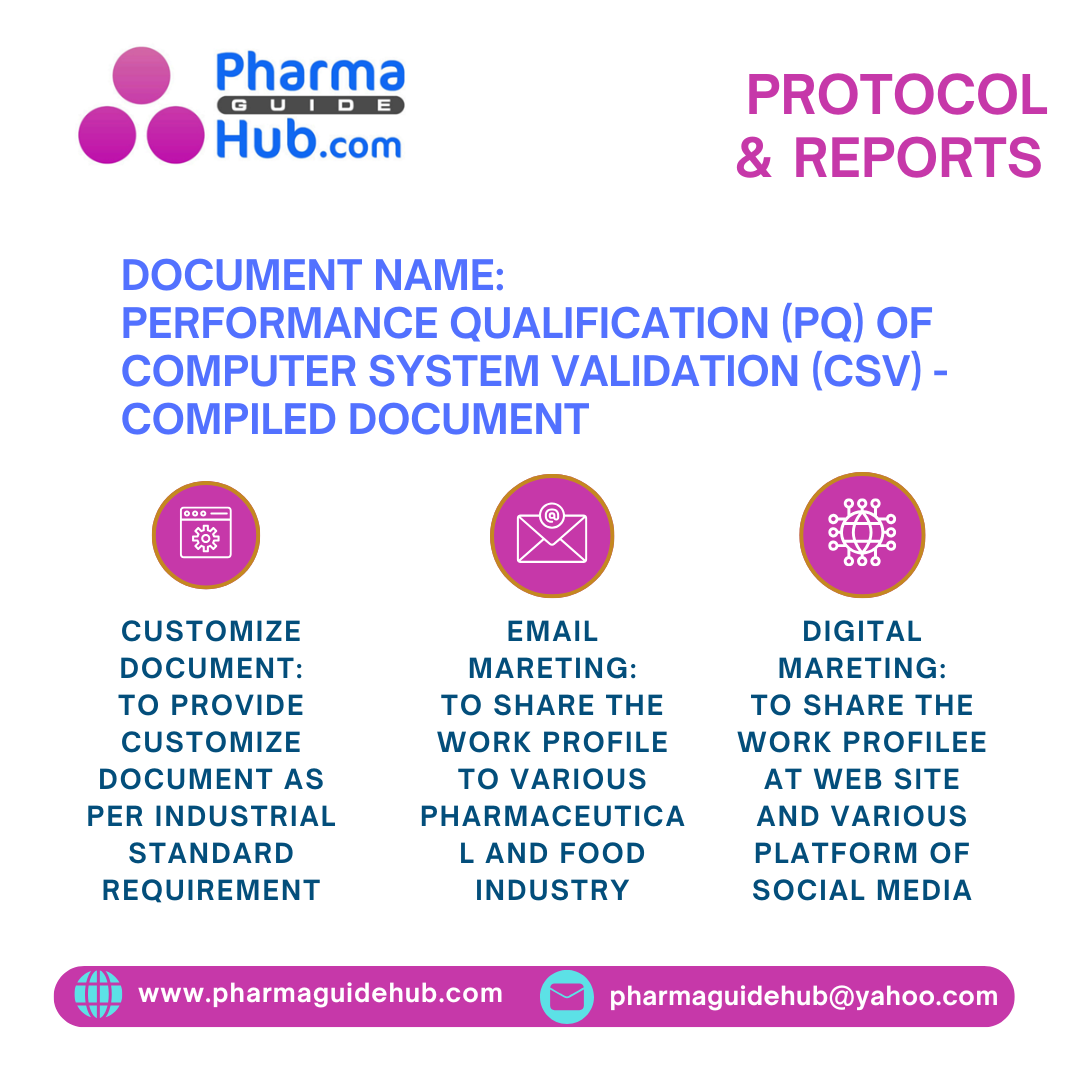 This is the compiled docuemnt of computer system validation. It contain entire information and screen shots which are needed for the performance qualification of computer system validation.